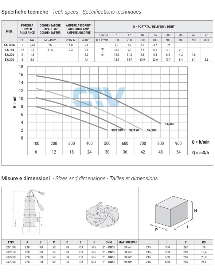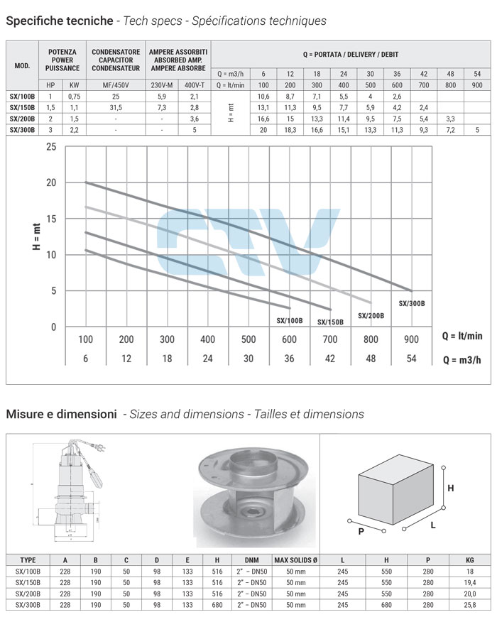 + Được trang bị 5m dây cáp điện H05 RN-F (cho model điện 1 pha), và 10m cáp điện H07 RN-F (cho model điện 3 pha), có hoặc không có phao